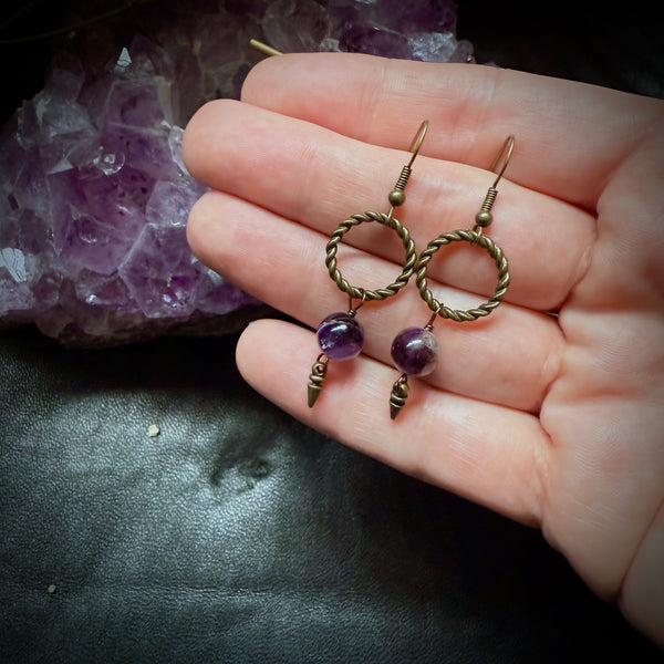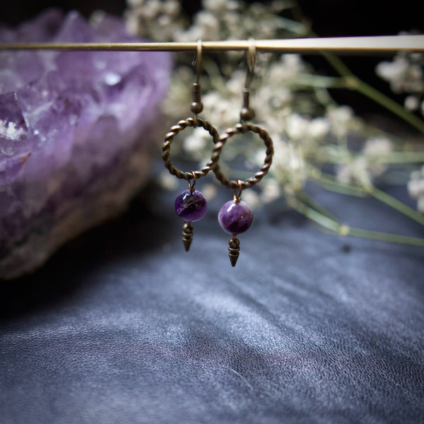 Trust your gut with these Amethyst drop earrings. The Amethyst stones amplify your natural intuition.