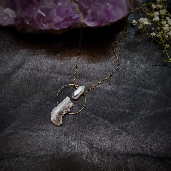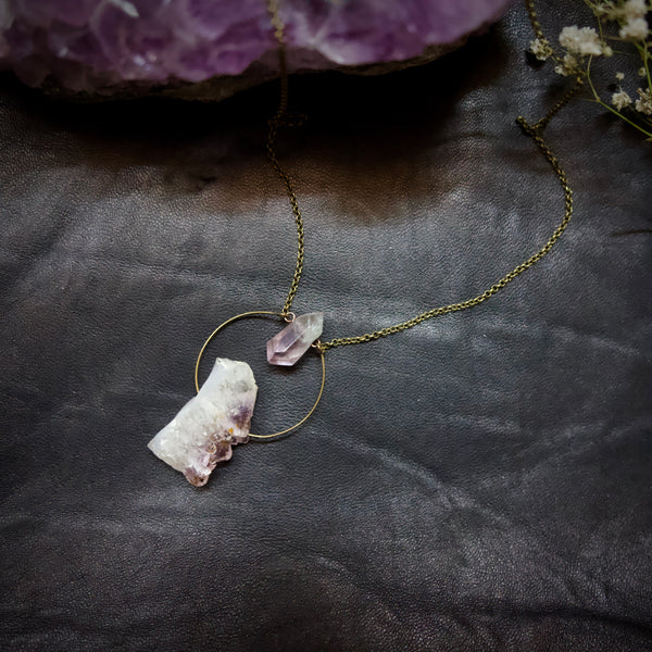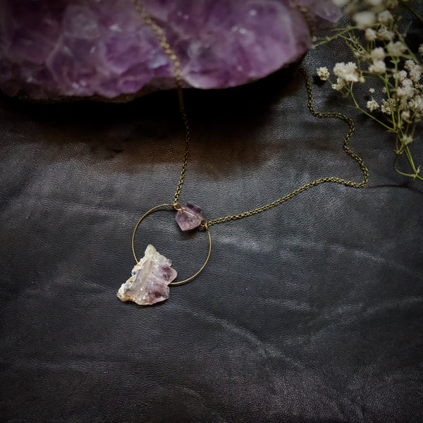 Duel power! Amethyst ignites intuitive fire while Ametrine cuts through confusion with razor-sharp clarity. Wear it boldly at your heart and embody the force of someone who trusts their gut and thinks with precision.