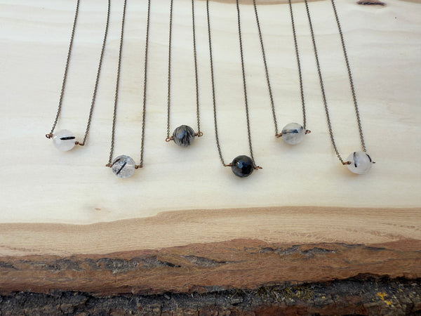 This necklace matches my hoop earrings with the same tourmalinated quartz for protection, energy and balance!