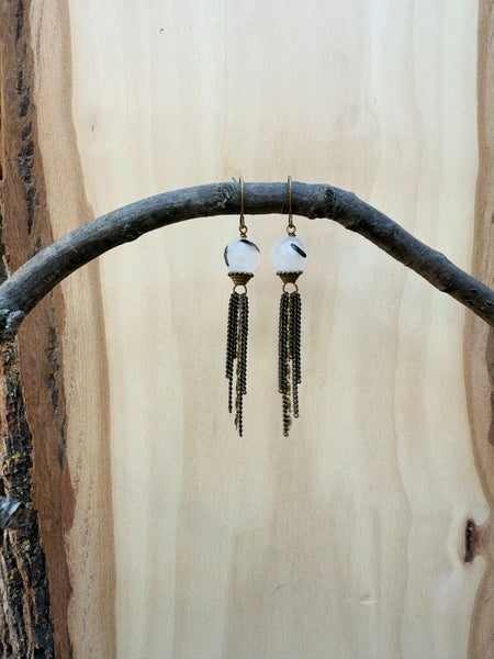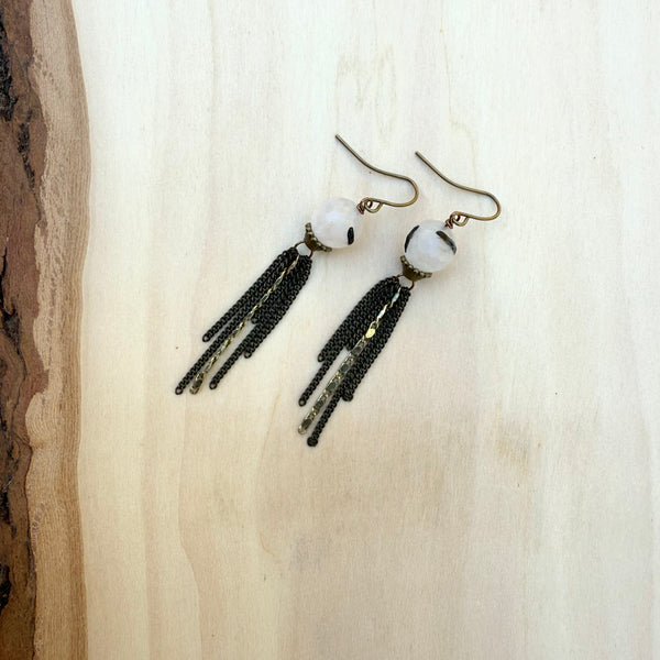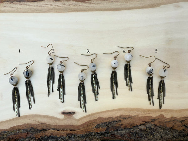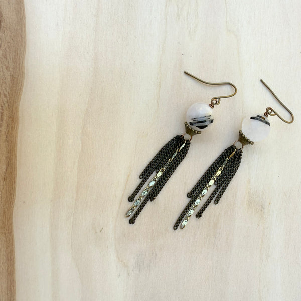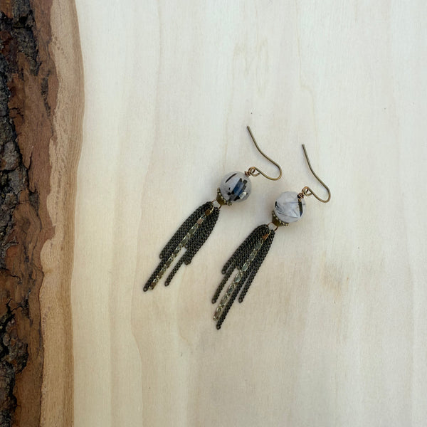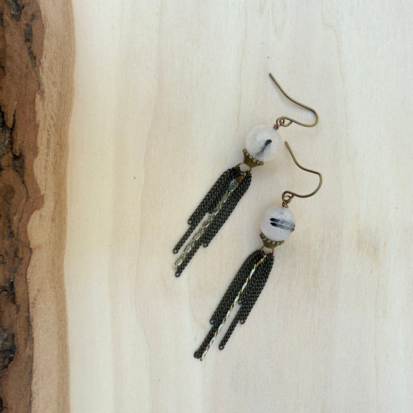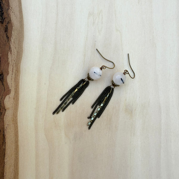 Unleash the powerful energy of the mystic orb tourmalinated quartz with every wear. The chain veil adds a touch of daring to your look. Embark on a journey of self-discovery and transformation with these statement earrings.